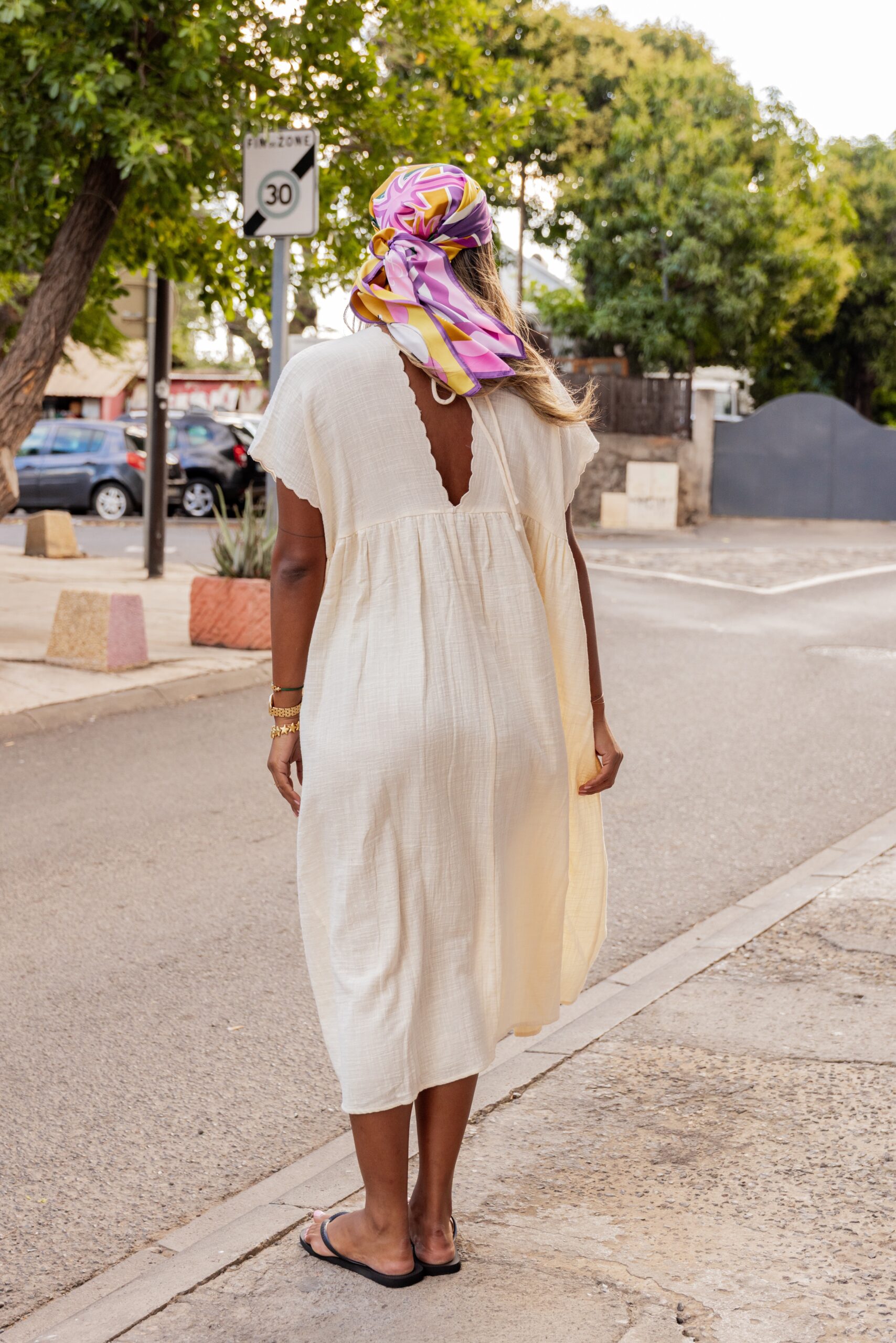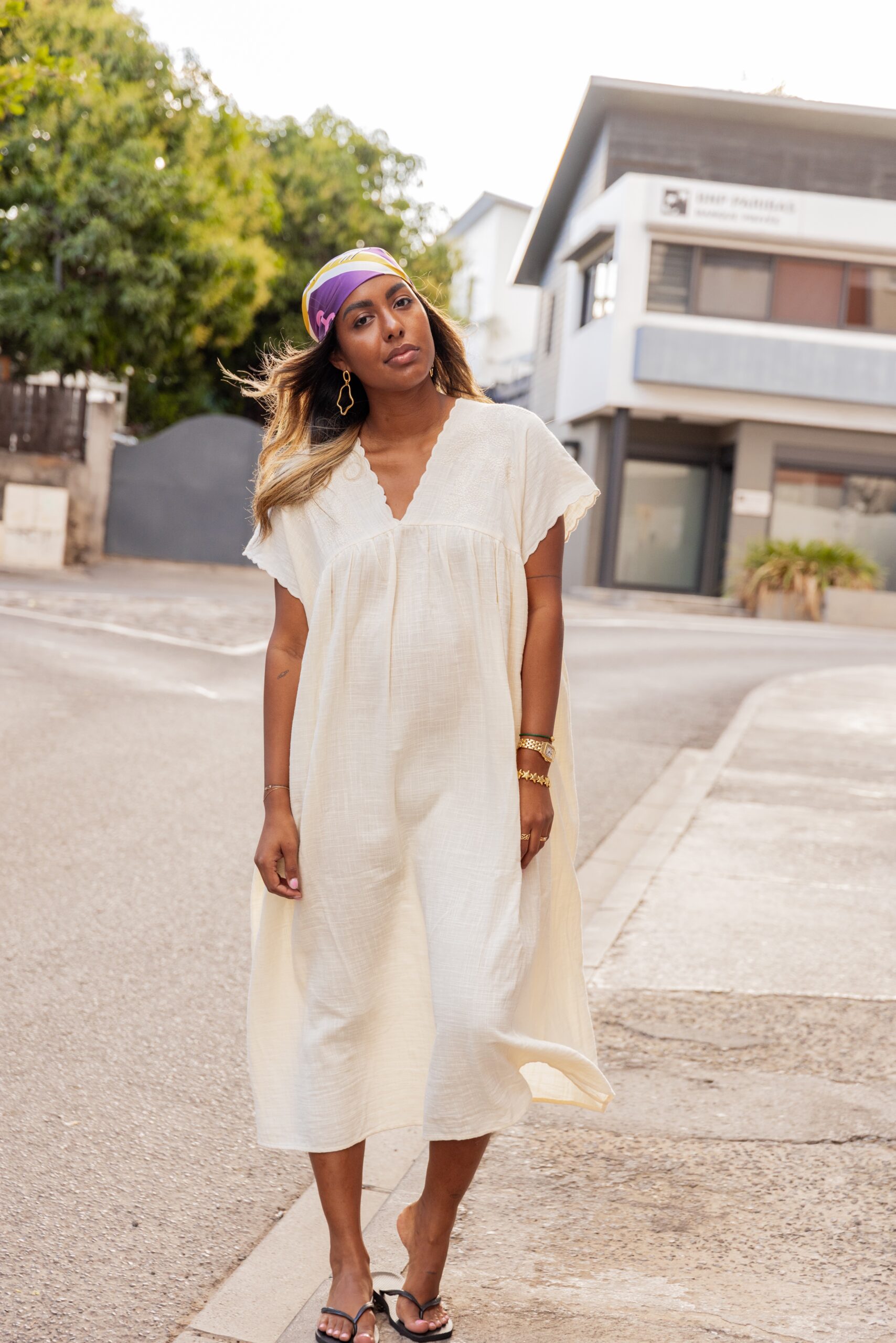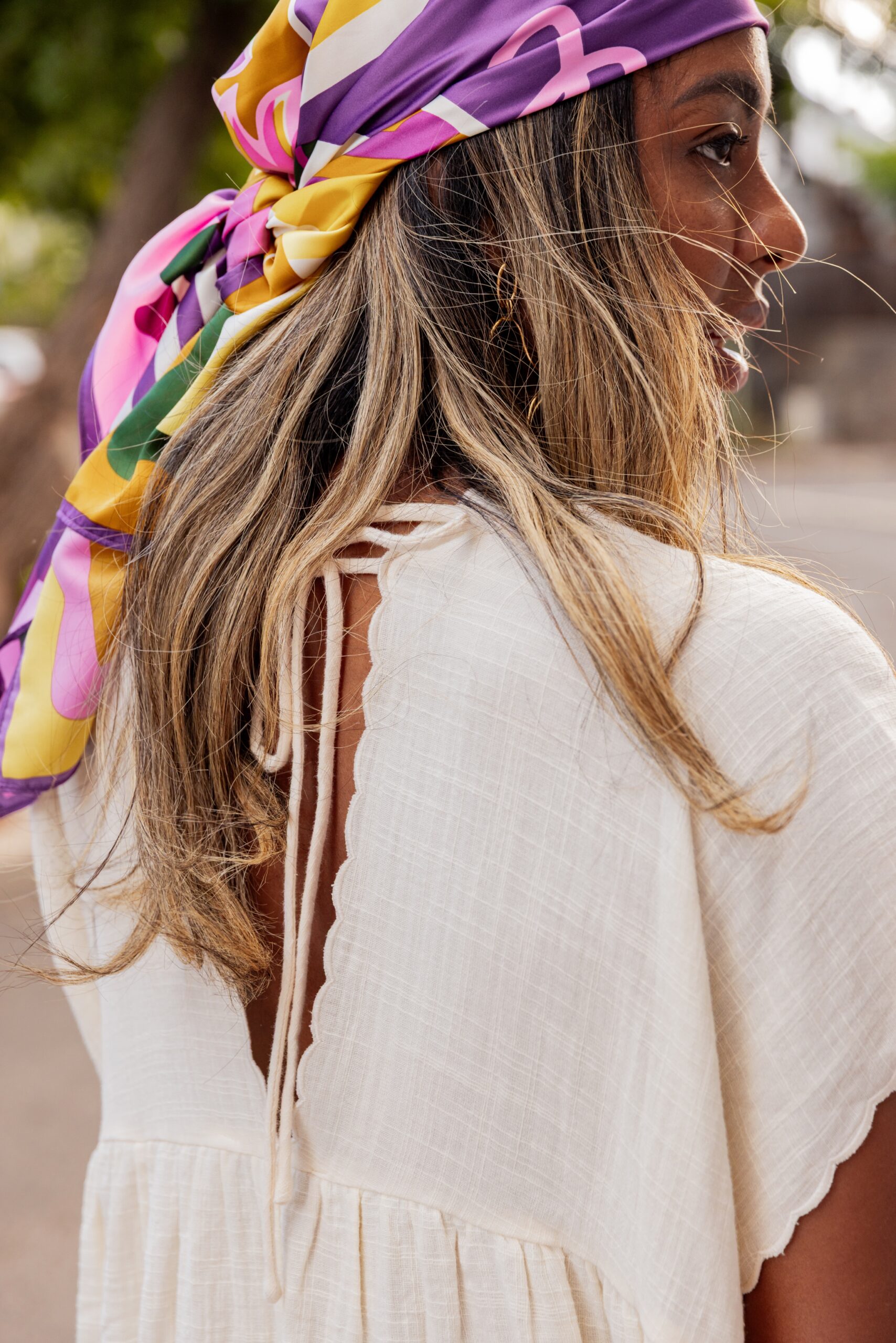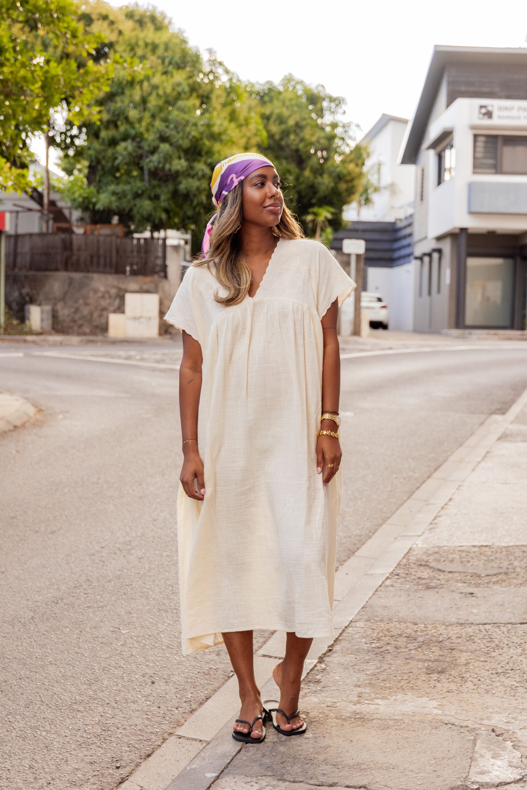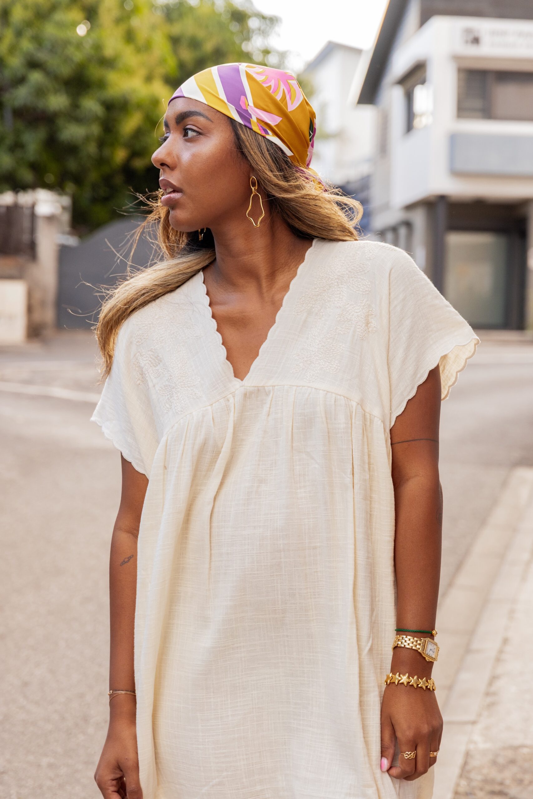 Détails : noeuds pour la fermeture du dos, fleurs brodées